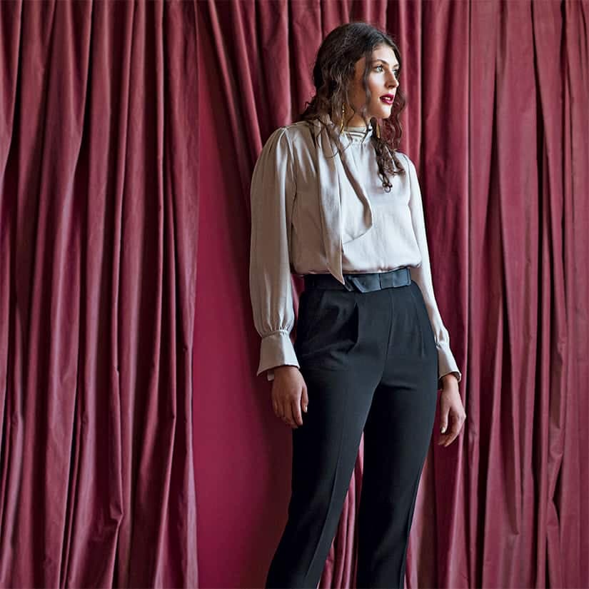 - Pantalon en polyester, rayonne et élasthanne (89 $, chez Simons; 02-16).