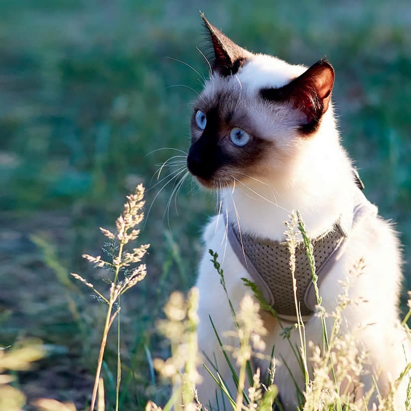 On le sait, le chat n’est pas un animal social comme le chien, et il est routinier et très attaché à son environnement. Voilà pourquoi il est plus difficile de lui faire aimer la promenade en laisse. Il faut donc commencer par le familiariser avec le harnais et procéder étape par étape, au rythme du chat.
