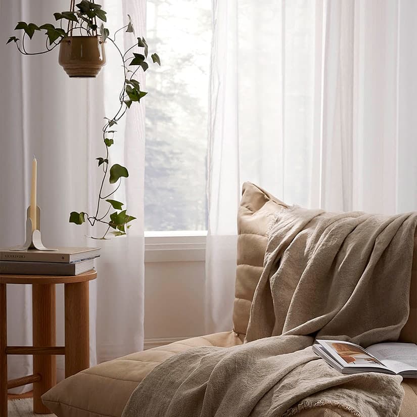 Voilages unis à teinte adoucie, à partir de 30$ chez Simons