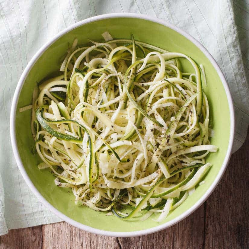 Les nouilles végétales, comme celles de courgettes, contiennent beaucoup d’eau. On les laisse donc égoutter dans une passoire, puis on les éponge bien avec du papier essuie-tout avant de les faire sauter.