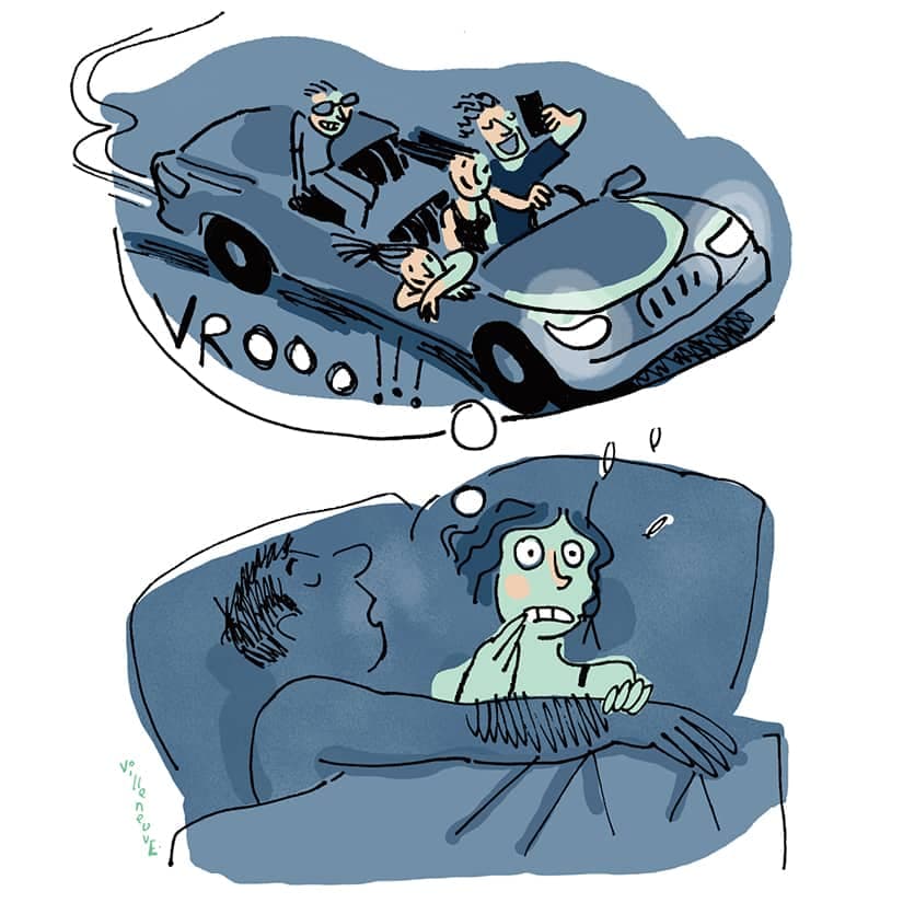 Je voyais donc l’obtention du permis de conduire comme une vraie libération! Pourtant, les premières fois que mon fils a pris le volant seul, j’étais incapable de me détendre. Au lieu de profiter du temps que j’avais enfin pour faire autre chose que le taxi, je me suis mise à m’imaginer des scénarios catastrophes: «Et s’il ratait un virage? Et s’il prenait mal une sortie d’autoroute et qu’un camion le frappait? Et si un policier sonnait à notre porte?» Et évidemment, quand mon fils prenait l’auto le soir, je ne m’endormais pas tant que je ne l’entendais pas arriver dans l’entrée. Une vraie folie!