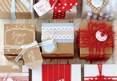 2. Emballer les boîtes au gré de sa créativité, en superposant les matériaux, les couleurs et les motifs.