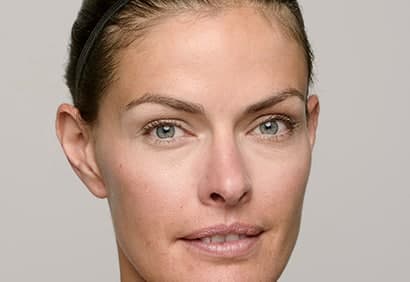 Appliquer une base de maquillage, puis déposer des touches de cachecernes du coin du nez au coin externe de l’oeil, sur le cerne et la paupière, et sous l’arcade sourcilière.