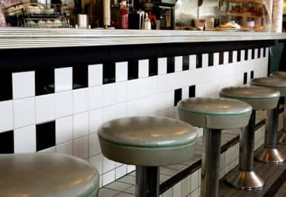 Lumière crue, miroir tournant le dos au long comptoir de formica, tabourets. Étaient-ils pivotants? Mon imaginaire souhaite tant que oui. Je passe ma commande: deux oeufs tournés, pain blanc, bacon. «Ton bacon, tu le veux sec-sec-sec?» me demande la blonde dame, avec un clin d'oeil ayant l'air de dire: «C'est comme ça que je l'aime, moi aussi.» C'est la première fois qu'on me demande comment je veux mon bacon. Je jubile.