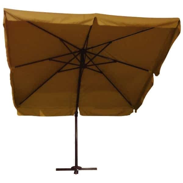 • suspendu, à installer près de la table ou à côté de l'aire où on veut de l'ombre. À l'instar du parasol traditionnel, il s'ajuste à l'angle désiré. Idéal si on préfère ne pas avoir de poteau au milieu de la table.