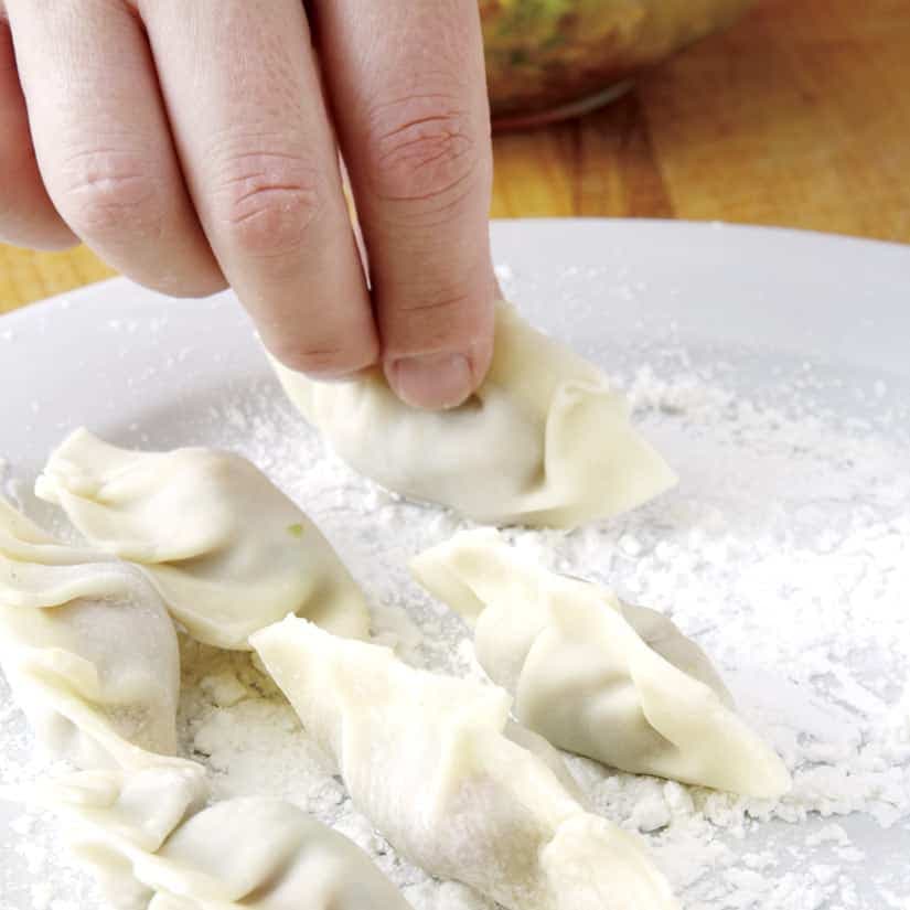 Si on utilise les formes carrées, il suffit de fermer les dumplings en forme de petits chaussons ou de baluchons.