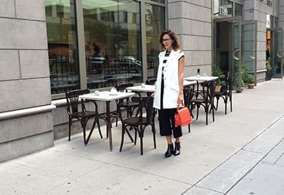 Pour la dernière photo de la journée, on a dû composer avec les nombreux passants au moment de la sortie des bureaux, rue Metcalfe. Certains plus curieux que d’autres ont décidé de poser à côté de notre lectrice! À lire aussi: 4 conseils de style pour un rendez-vous galant