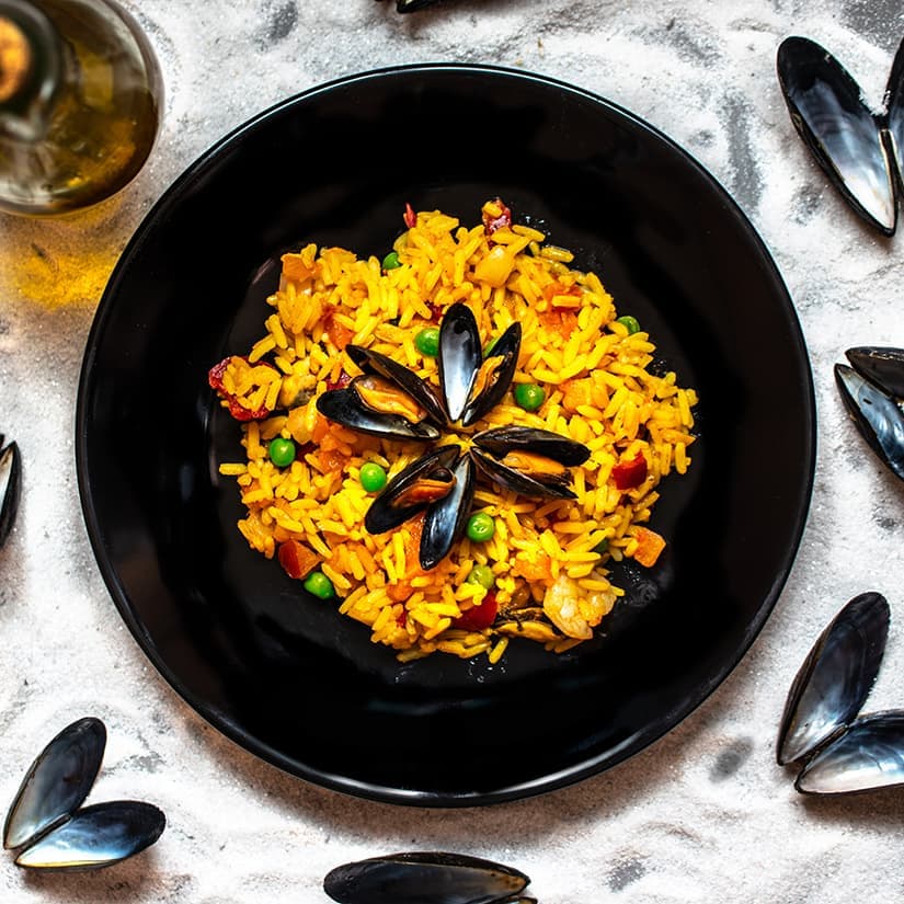 Vous pouvez opter pour la paella à la viande, celle aux fruits de mer ou encore la végétarienne.