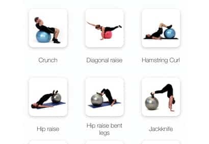 C'est quoi? Une banque de 28 exercices à réaliser sur un ballon suisse afin de tonifier les muscles des bras, du tronc et du bas du corps. On peut opter pour l'une des deux séances proposées ou créer notre programme en choisissant parmi les exercices de niveaux facile, moyen et difficile. On détermine ensuite le type d'entraînement. Par exemple, la méthode standard nous permet de sélectionner la durée des exercices et des temps de repos ainsi que le nombre de répétitions. Certains exercices nécessitent l'utilisation de poids.