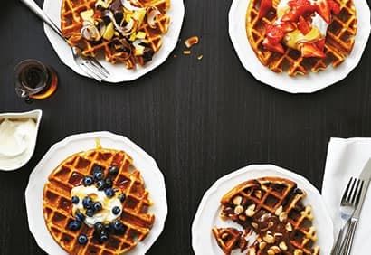 Pour un brunch gourmand, on sert ces délicieuses gaufres maison et un assortiment de garnitures qui plaira à tous!