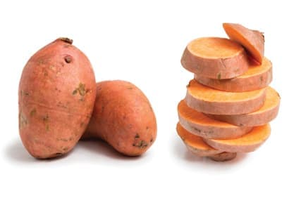 La patate douce est un tubercule qui ne fait pas partie de la même famille que la pomme de terre. Elle est plus sucrée que cette dernière et elle contient deux fois plus de fibres.
