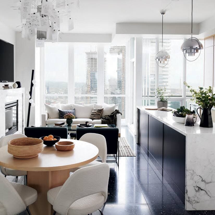 La designer Lindsey Levy a revu et corrigé l’ensemble des 1200 pi2 de cet appartement juché au 52e étage d’un gratte-ciel torontois.