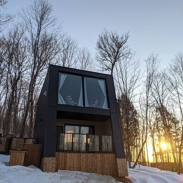 Dans les environs, les visiteurs peuvent profiter du sentier multifonctionnel le P’tit Train du Nord, qui passe juste à côté, ou de la station Tremblant, à 10 minutes de voiture. Mais il n’y a rien de mal à rester dans son pod pendant tout le séjour, à déguster des sushis et relaxer dans le jacuzzi!