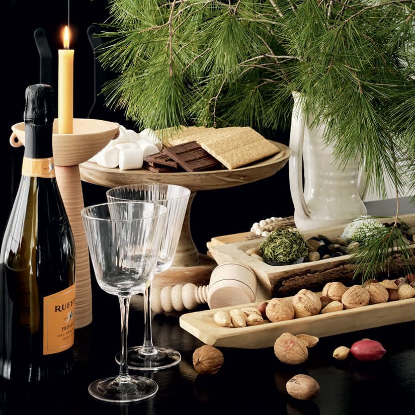 Elle a fait appel à son amie designer Sarah Walker pour l’aider à saupoudrer sa demeure de féerie. «La maison, tout habillée de lambris blancs, calme et chaleureuse, est déjà magique en hiver, raconte Karyn. Pour Noël, nous y avons laissé entrer la nature afin de lui apporter un supplément d’âme tout en honorant la beauté de la forêt environnante.»