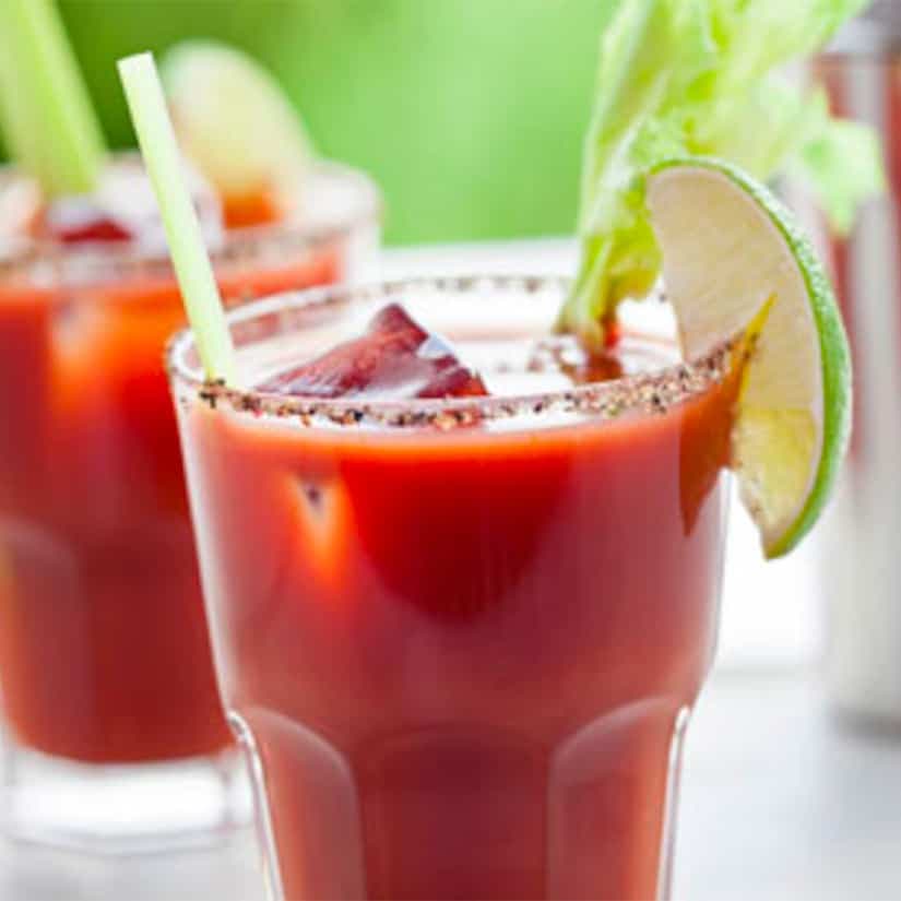 - Ajouter la vodka et le jus à de la glace et assaisonner avec le poivre, la sauce Worcestershire et la sauce Tabasco.