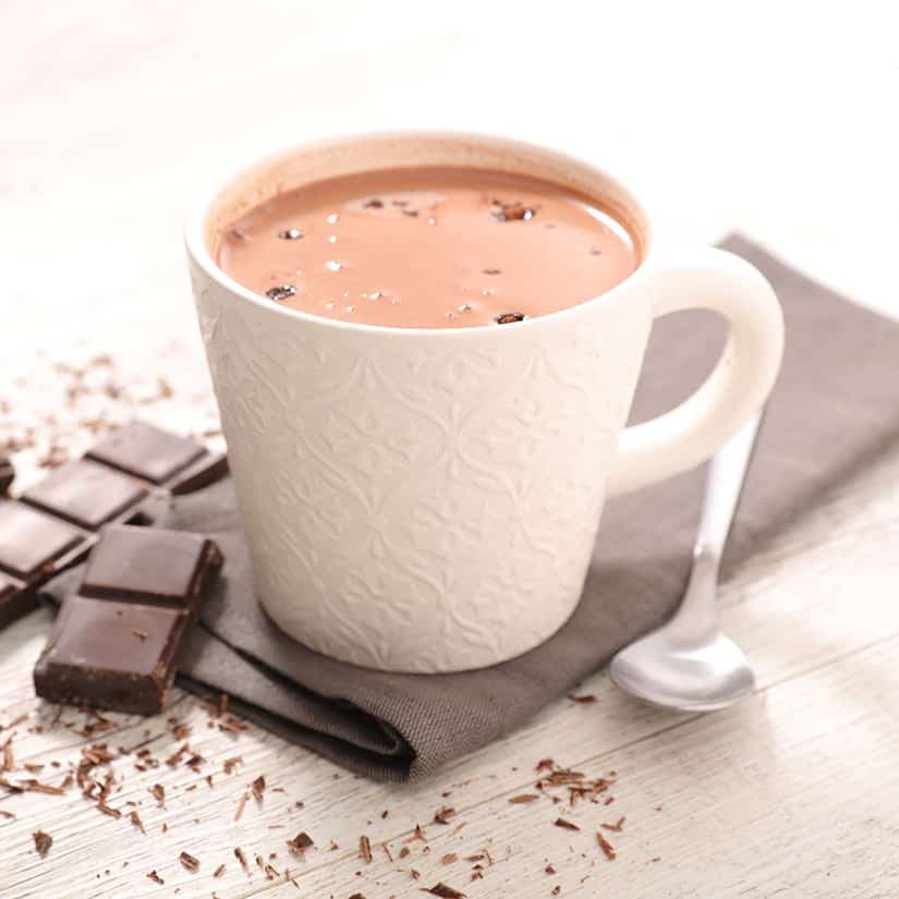 - À l'aide d'un mélangeur à main ou d'un batteur électrique, mélanger jusqu'à ce que le chocolat ait fondu et que la préparation soit mousseuse. Incorporer la liqueur de café, si désiré. Verser dans quatre grandes tasses ou dans huit petits verres résistants à la chaleur.