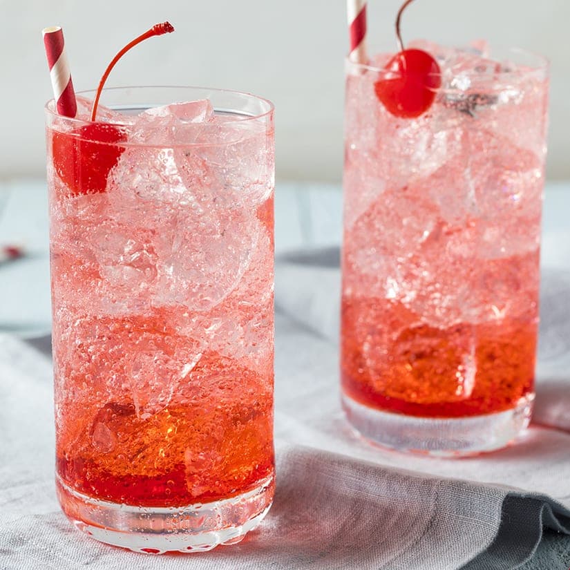 - Dans un verre à gin, verser tous les ingrédients sur de la glace. Garnir avec la cerise et la tranche d'orange.