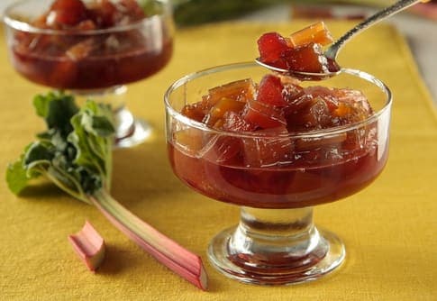 - 1. Couper les tiges de rhubarbe en morceaux de 1.5 cm (1/2 po) sans les peler. Mettre dans une casserole avec les autres ingrédients. Laisser reposer pendant au moins 12 heures.