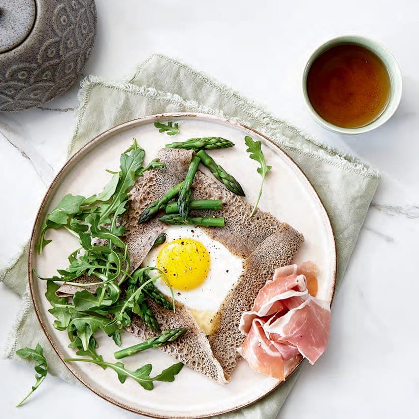 Crêpes de sarrasin oeuf miroir et prosciutto