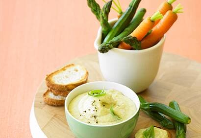 Mélanger du yogourt épais avec un concombre râpé bien égoutté et de la purée d'ail. Au robot culinaire, réduire en purée une boîte de pois chiches (19 oz/540 ml) rincés et égouttés avec du tahini (pâte de sésame) et de l'ail. Au robot culinaire, réduire en purée une boîte de haricots (19 oz/540 ml) avec de l'ail, des piments jalapeño, de la coriandre fraîche, du jus de citron et des oignons verts (ou de la ciboulette) hachés finement. Mélanger un pot d'antipasto avec une grosse cuillerée de yogourt nature ou de mayonnaise. Mélanger du chutney ou du pesto avec du yogourt nature. Ou encore, combiner moutarde, miel, mayo et un trait d'huile de sésame. Autre suggestion: mélanger mayo ou crème sure avec de la pâte de cari thaïe ou indienne. Mélanger du yogourt égoutté avec du miel, de la muscade, de l'anis étoilé, du gingembre râpé et du zeste de citron.