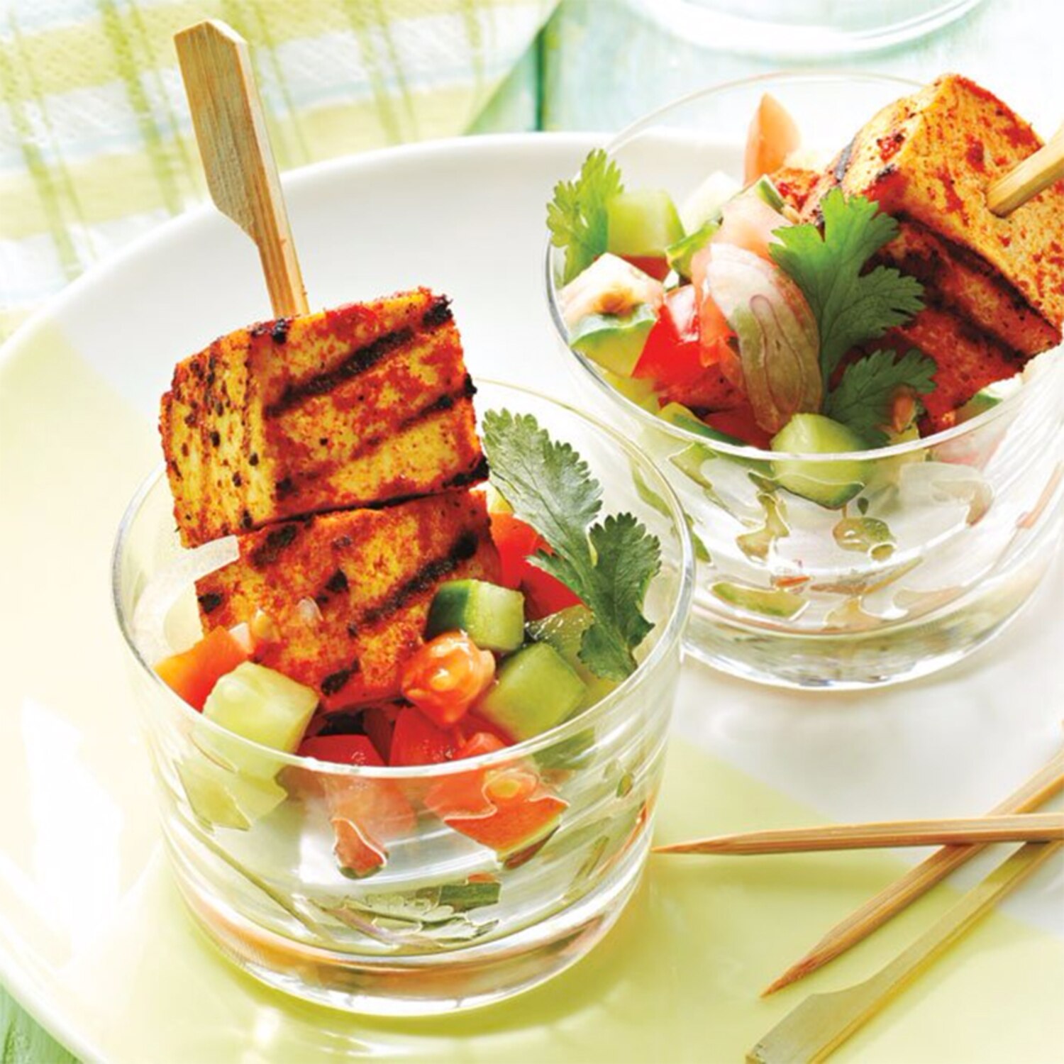 En plus d'être savoureuses, ces petites brochettes à l'indienne sont toutes mignonnes à servir en verrines.