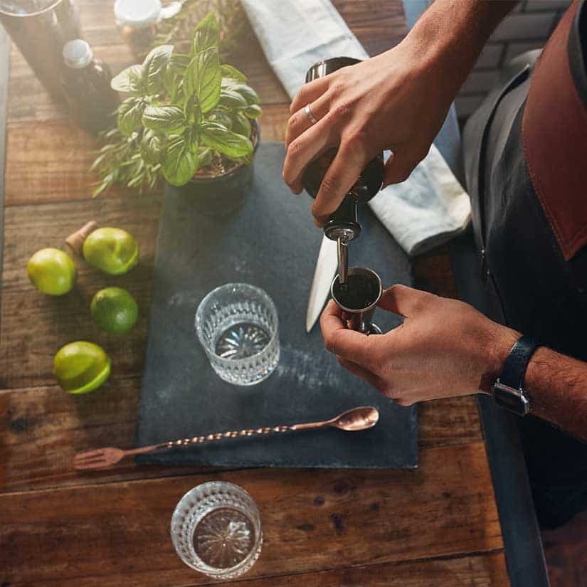 3. Le matériel de base. Pour Romain Cavelier, seulement 3 outils sont indispensables: le shaker (pour brasser), le tamis (pour filtrer) et la mesure à boisson (pour doser précisément la quantité d’alcool).