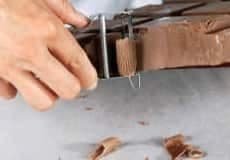 Graisser très légèrement un morceau de papier-parchemin et le déposer sur une plaque à pâtisserie retournée. Verser de 3 à 4 oz (90 à 125 g) de chocolat fondu et l'étendre aussitôt à l'aide d'une longue spatule de métal de manière à obtenir une couche d'environ 1/8 po (3 mm) d'épaisseur. Réfrigérer jusqu'à ce que le chocolat ait pris, sans plus (il ne doit pas devenir trop dur). À l'aide d'un emporte-pièce, découper des formes dans le chocolat. Au besoin, soulever légèrement le papier-parchemin pour en détacher les formes.