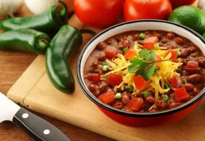 • Ajouter 2 c. à tab (30 ml) de poudre de cacao, 2 c. à tab (30 ml) d'assaisonnement au chili, 4 t (1 L) de sauce tomate, 1 pincée de flocons de piment et 2 boîtes de 19 oz (540 ml) de haricots rouges rincés et égouttés. Saler et poivrer. Cuire 20 minutes à découvert.