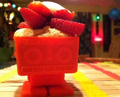 Comme tout un chacun, j'ai dans mes armoires des moules à muffins en métal. C'est chaque fois avec un peu plus de mépris que je les nettoie tout en me demandant si le fait de les recouvrir de moules en papier sert vraiment à quelque chose. Durant les fêtes, je suis tombée sur une fantastique découverte. En fait, je dois remercier fiston d'avoir remué ciel et terre pour que je lui achète des robots en silicone, car ces petits moules me facilitent la vie. Pas besoin de les frotter ni de les enduire de gras, on les balance au lave-vaisselle et ils en sortent comme neufs. Faut dire aussi qu'ils ont tout pour plaire aux petits: par leurs formes et couleurs variées, ils sont plus proches du jouet que de l'instrument de pâtisserie. De plus, même tout juste sortis du four, ils ne présentent aucun risque de brûlure. Leur seule faiblesse: leur molesse. On doit les manipuler avec soin avant de les placer au four, sous peine de voir leur contenu s'épandre.