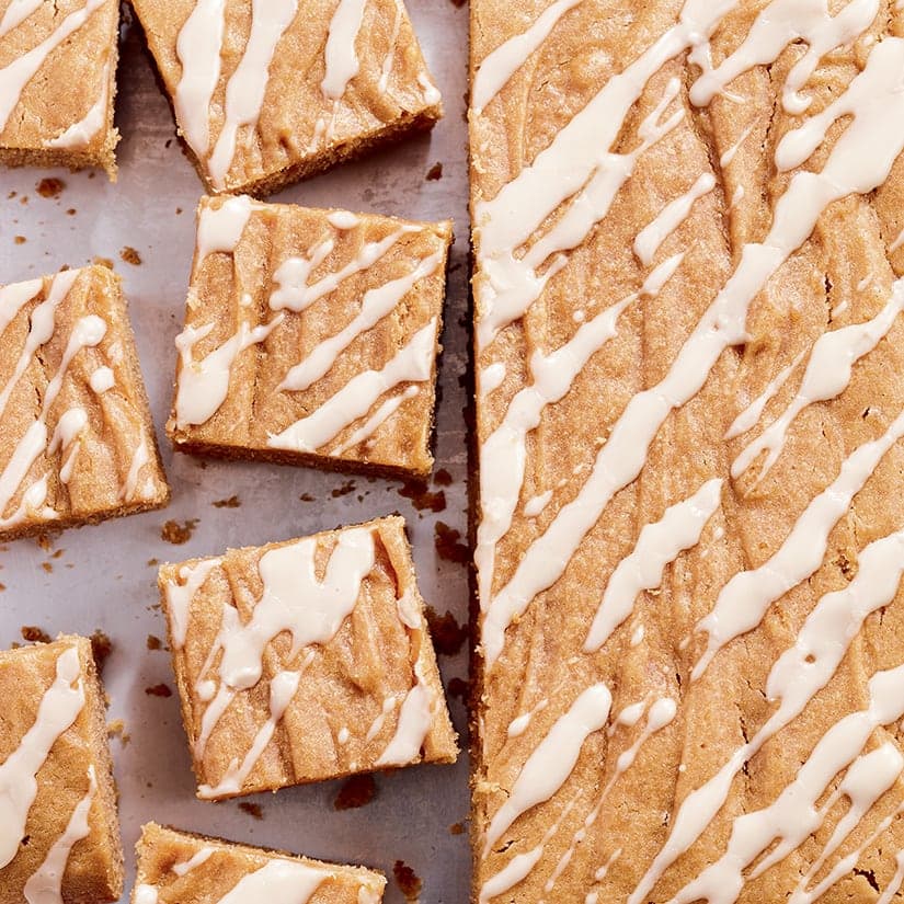 - Entre-temps, dans un petit bol, à l'aide d'un fouet, mélanger le sirop d'érable et le sucre glace. Arroser le gâteau de la glace. Laisser reposer quelques minutes afin que la glace fige, puis couper en carrés.
