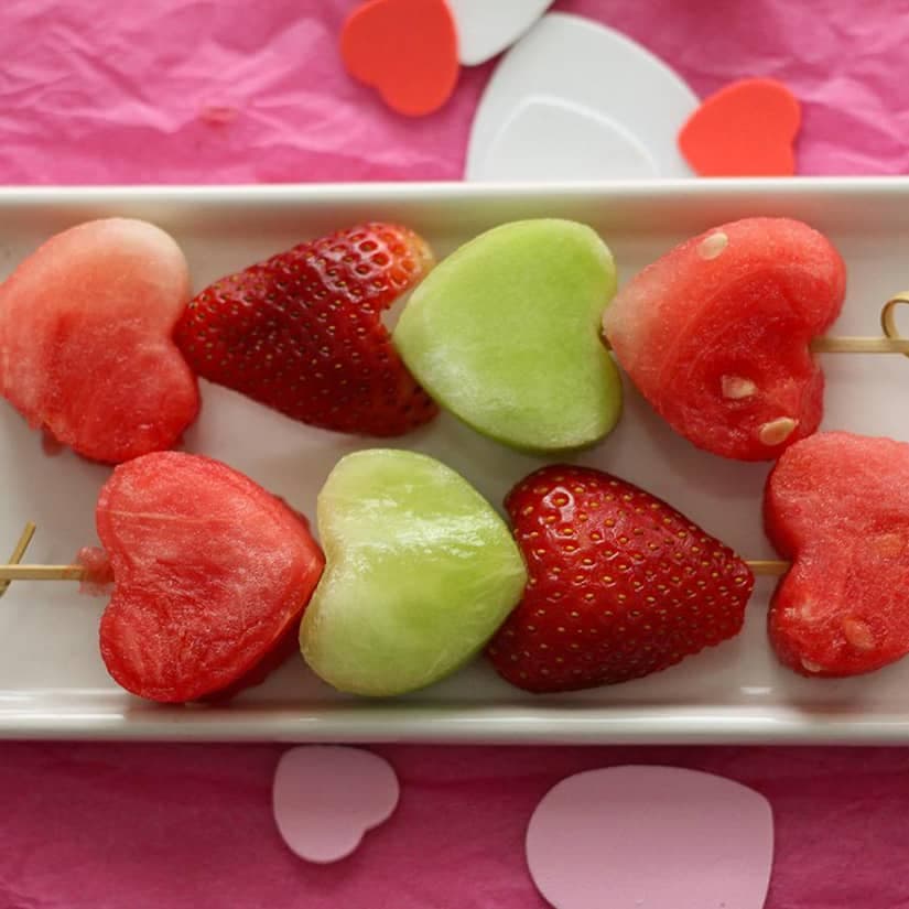 Brochettes de fruits en coeur