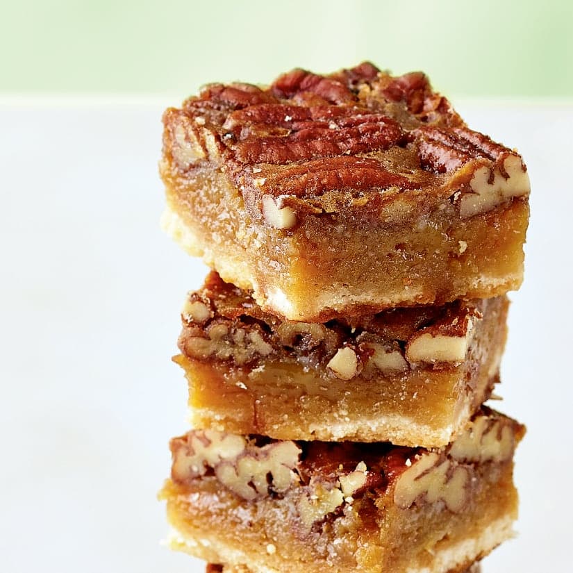 - Parsemer la croûte refroidie des pacanes et verser la préparation aux œufs. Déposer le moule sur une plaque de cuisson et cuire au four préchauffé à 350 °F (180 °C) de 50 à 55 minutes ou jusqu'à ce que la garniture ait pris. Déposer le moule sur une grille et laisser refroidir complètement. Couvrir et réfrigérer 1 heure ou jusqu'à ce que la garniture soit froide. Démouler en soulevant le papier parchemin. À l'aide d'un couteau dentelé, couper en carrés.