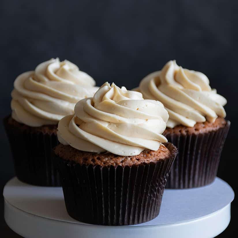 - (Vous pouvez préparer la crème au beurre à l'avance et la couvrir. Elle se conservera jusqu'au lendemain au réfrigérateur. Laisser revenir à la température ambiante et battre à nouveau avant de glacer les cupcakes.)
