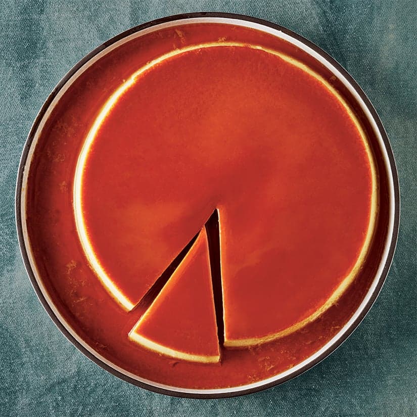 - Au moment de servir, passer la lame d'un couteau sur le pourtour du moule pour en détacher la crème. Tremper le fond du moule dans l'eau chaude quelques secondes pour faire fondre un peu le caramel, déposer une assiette munie de rebord sur le moule et retourner rapidement le tout. Retirer délicatement le moule et couper la crème renversée en pointes.
