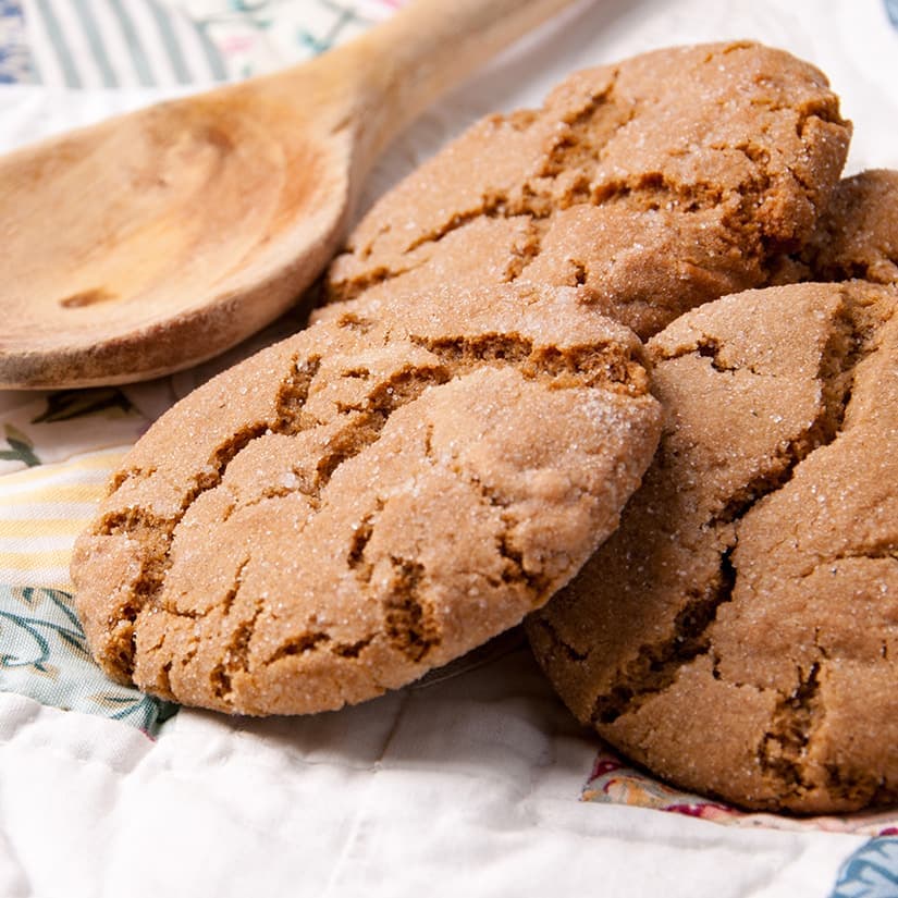 - Dans un bol, mélanger la farine, le bicarbonate de sodium, le gingembre, la cannelle et les épices mélangées. Dans un autre bol, à l'aide d'un batteur électrique, battre la graisse végétale et le sucre jusqu'à ce que le mélange soit crémeux. Ajouter la mélasse et l'oeuf en battant. Ajouter les ingrédients secs et mélanger à l'aide d'une cuillère jusqu'à ce que la pâte soit homogène.