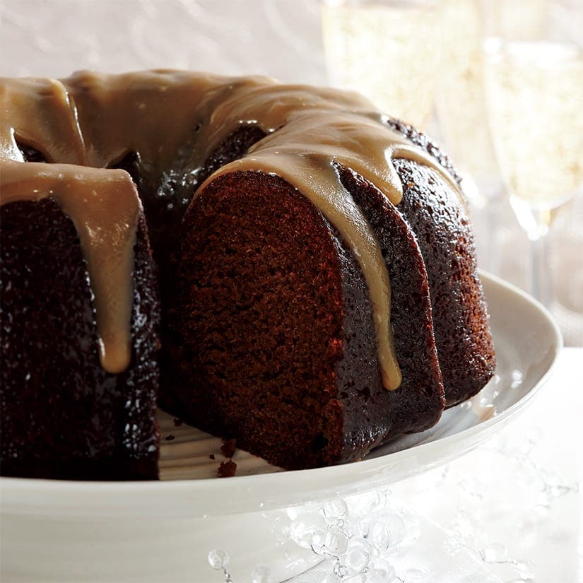 - Verser la pâte dans un moule à cheminée (de type Bundt) d'une capacité de 12 t (3 L), beurré. Cuire dans le tiers inférieur du four préchauffé à 350°F (180°C) pendant environ 55 minutes ou jusqu'à ce qu'un cure-dents inséré au centre du gâteau en ressorte propre. Mettre le gâteau sur une grille et laisser refroidir pendant 10 minutes. Démouler sur une assiette.