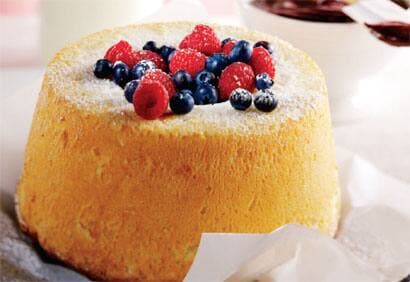 - Cuire au centre du four préchauffé à 350°F (180°C) de 45 à 50 minutes ou jusqu'à ce que le dessus du gâteau reprenne sa forme sous une légère pression du doigt. Retourner le moule sur sa cheminée et laisser refroidir complètement. Démouler le gâteau et le mettre dans une assiette. (Vous pouvez préparer le gâteau à l'avance, l'envelopper d'une pellicule de plastique et le mettre dans un contenant hermétique. Il se conservera jusqu'à 2 jours à la température ambiante ou jusqu'à 1 mois au congélateur.)