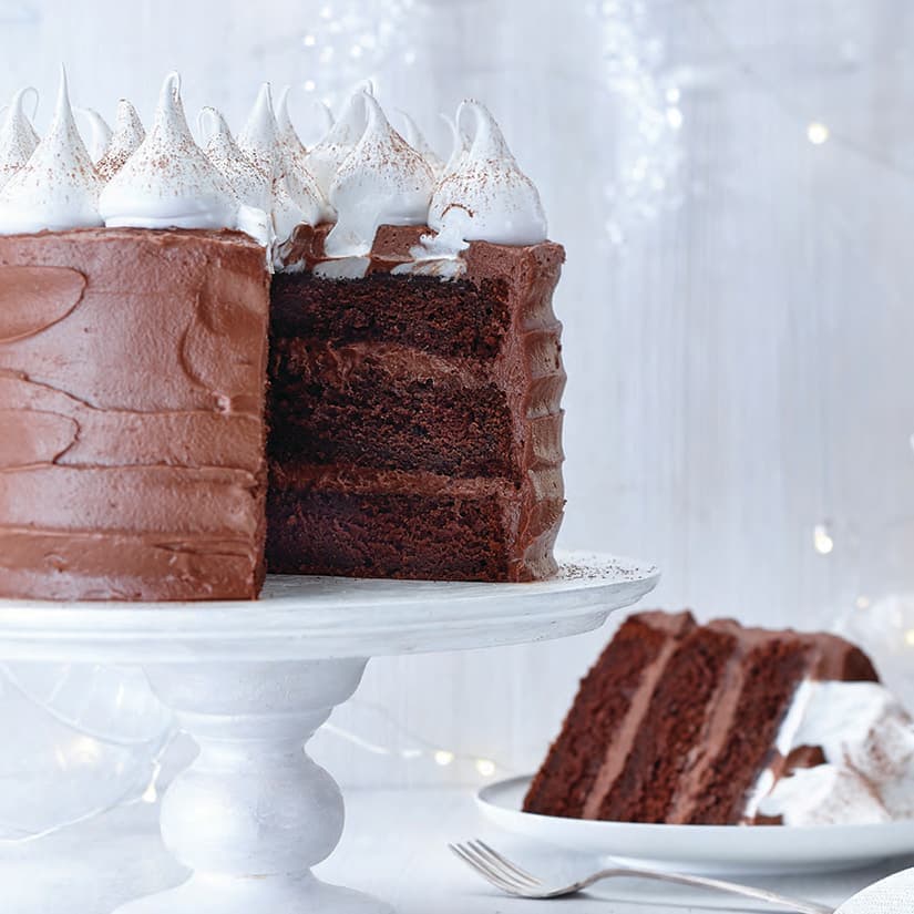- 6. Au moment de servir, déposer des petits monticules de la crème de guimauve sur le dessus du gâteau. Saupoudrer de poudre de cacao, si désiré. (Le gâteau se conservera jusqu'à 2 jours au réfrigérateur.)