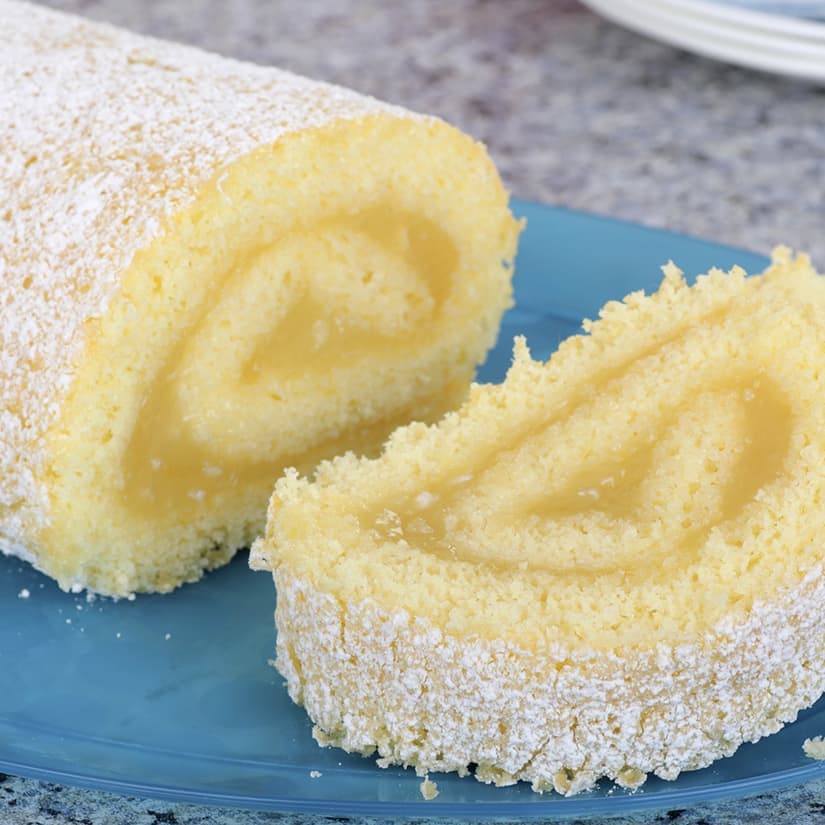 - Dérouler délicatement le gâteau et retirer le papier-parchemin. À l'aide d'un pinceau, badigeonner le gâteau du sirop au citron refroidi. Étendre la garniture au citron sur le gâteau. En commençant par l'un des côtés courts, rouler le gâteau. (Vous pouvez préparer le gâteau roulé à l'avance. Il se conservera jusqu'au lendemain au réfrigérateur et 2 semaines au congélateur. Pour le décongeler, mettre le gâteau pendant 5 heures au réfrigérateur.)