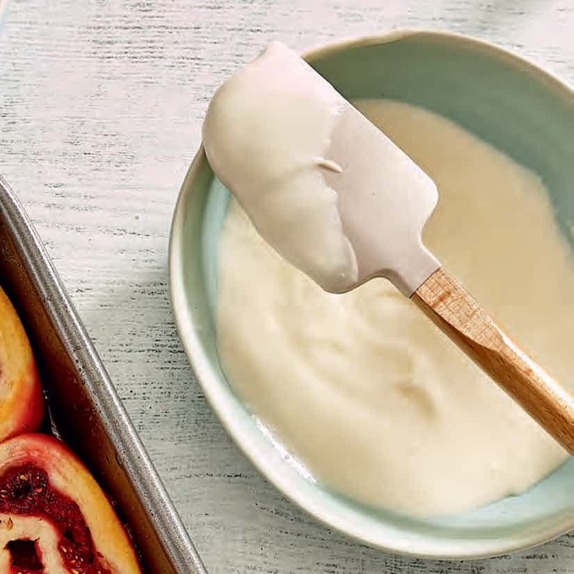 - Dans un bol, à l'aide d'un batteur électrique, mélanger le fromage à la crème, le zeste et le jus de citron. Incorporer petit à petit le sucre glace en battant jusqu'à ce que la glace soit lisse et crémeuse. (La glace se conservera jusqu'à 5 jours au réfrigérateur.)