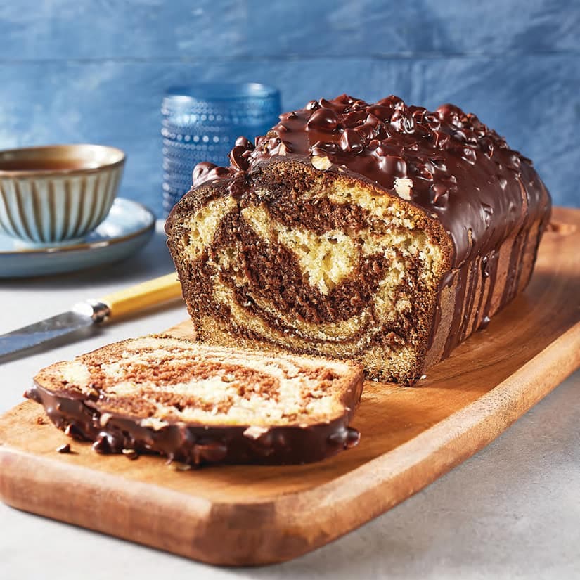 Pain marbré vanille et cacao, glaçage choco-noisettes