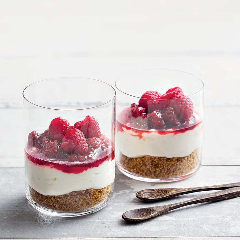 - À l'aide d'une cuillère, répartir la garniture au fromage à la crème sur les croûtes Graham réservées dans les pots, environ 2/5 t (100 ml) par pot. Couvrir de la garniture aux framboises, environ 1/3 t (80 ml) par pot, puis garnir du reste des framboises fraîches. (Les pots se conserveront jusqu'à 2 jours au réfrigérateur.)