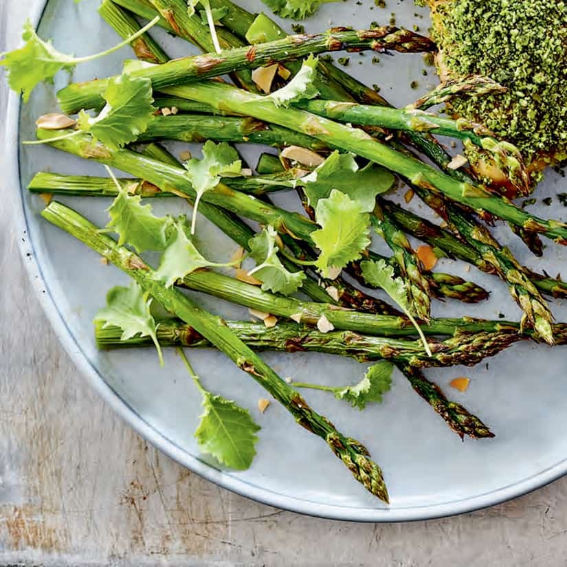 - Au moment de servir, parsemer les asperges d'amandes et de kale.