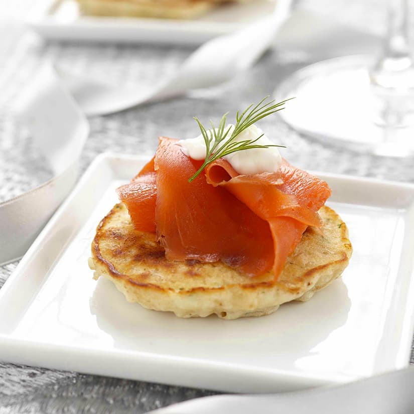 Blinis au riz brun, au saumon fumé et à la crème fraîche