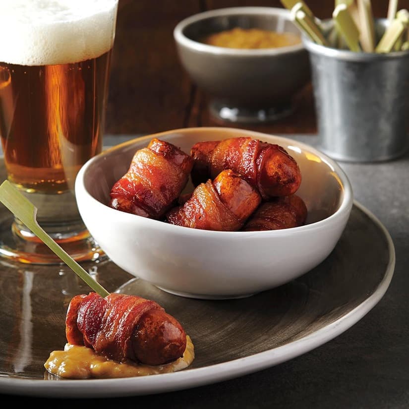 Bouchées de saucisses au bacon et au fromage