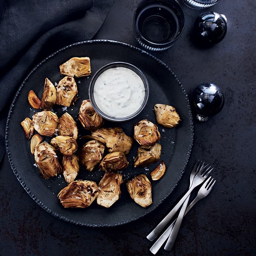 Cœurs d’artichauts grillés, sauce yogourt et citron