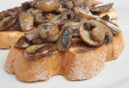 - Au moment de servir, à l'aide d'une cuillère, répartir la garniture aux champignons sur les croûtons réservés. Garnir de copeaux de parmesan.