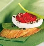 - Ajouter une tranche de fromage de chèvre et une lanière de poivron rouge.