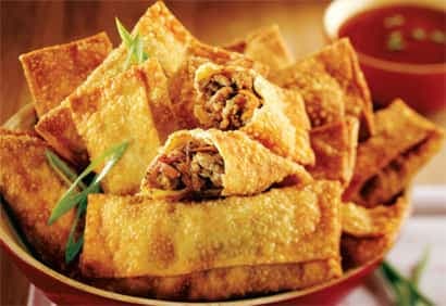 - À l'aide d'une écumoire, les déposer au fur et à mesure dans une assiette tapissée d'essuietout et laisser égoutter. Mettre les egg rolls dans un plat allant au four et réserver au four préchauffé à 300°F (150°C) jusqu'au moment de servir. Accompagner de sauce aux prunes.