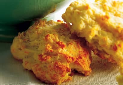 - Dans un bol, mélanger la farine, la poudre à pâte et le sel. Ajouter la graisse végétale et, à l'aide d'un coupe-pâte ou de deux couteaux, travailler la préparation jusqu'à ce qu'elle ait la texture d'une chapelure grossière. Faire un puits au centre des ingrédients et y ajouter l'oeuf et le lait. Mélanger jusqu'à ce que la préparation soit homogène. Incorporer le fromage. Avec les mains farinées, façonner la pâte en 18 boules d'environ 2 1/2 po (6 cm) de diamètre et les déposer sur une plaque à biscuits tapissée de papier-parchemin. Aplatir légèrement les boules de façon à former des galettes.